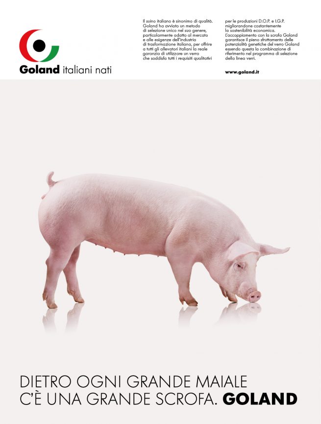 Goland investe in pubblicità nelle riviste di settore per comunicare l'italianità dei prodotti, che rispondono alle specifiche richieste dell'industria di macellazione nazionale.